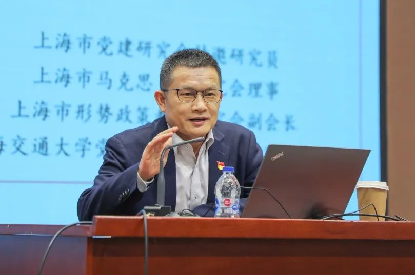 11月22日,汽车学院第四十九期“同车行”党委特邀报告于新能源汽车工程中心二楼报告厅举行。上海市党建研究会特邀研究员陈荣武教授为学院师生党员带来“全面建设社会主义现代化国家新征程的政治宣言和行动纲领——学习贯彻党的二十大精神”主题报告。汽车学院党委副书记葛畅老师主持报告,学院党委班子成员与全院师生党员代表共同参加报告会。