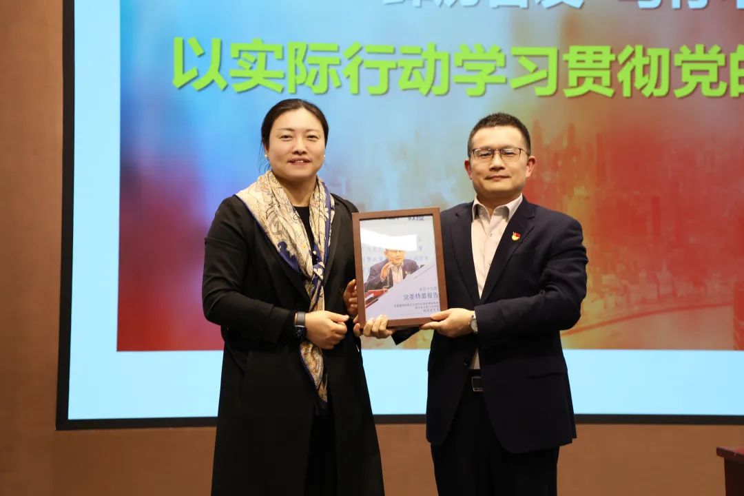 报告后,汽车学院党委书记曹静老师为陈荣武教授赠送了“同车行”党委特邀报告纪念照。