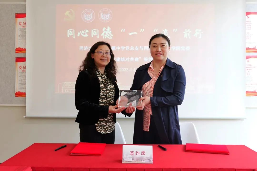 多年来,同济一附中作为同济大学的附属学校、同济基础教育集团的核心成员校,依托高校在干部选拔、机制建设、思政教育等方面形成学校党建工作特色,促进党建工作和教育教学同频共振,以党建引领学校内涵发展。“党建结对共建”签约仪式上,同济大学汽车学院党委书记曹静与同济一附中党总支书记刘育蓓共同签署共建协议并合影留念。