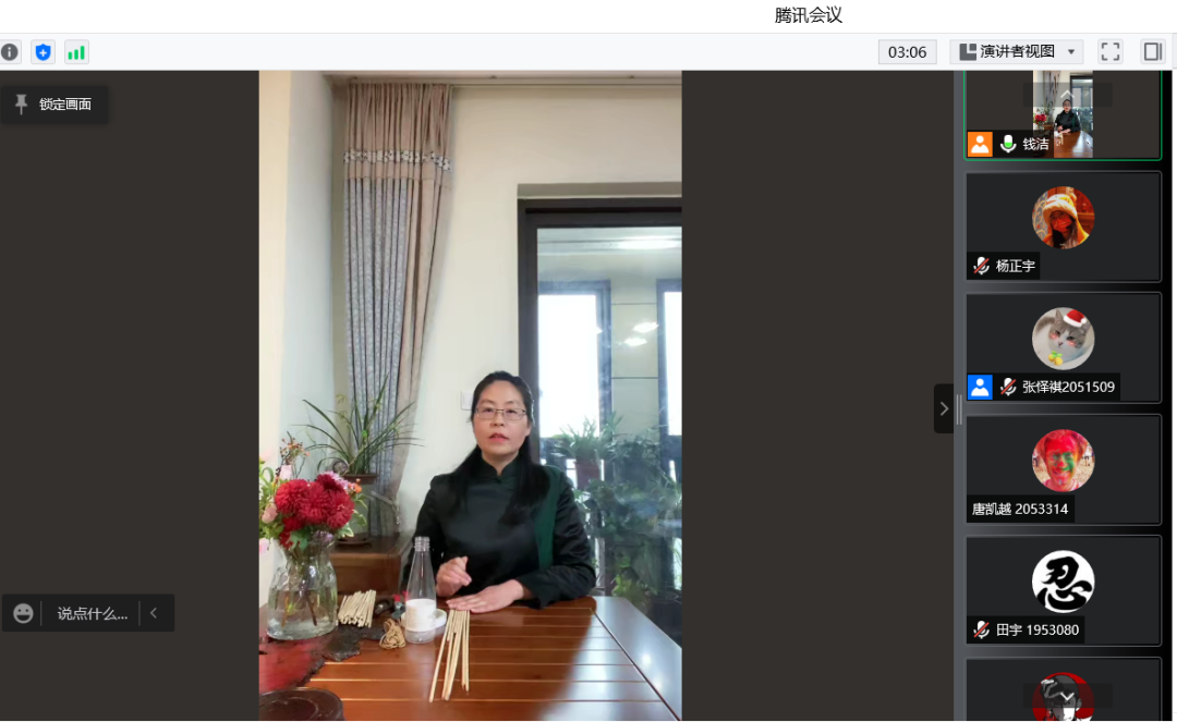 疫情也许会限制我们的脚步,但无法限制我们的心;我们当下虽然难以去校园外奔赴大好春光,却可以在寝室里营造一方春意盎然的小小天地。线上直播邀请到了钱洁老师为我们讲解中国传统插花艺术,她以两件古朴又不失现代风格的插画作品为例,在传授插花技巧的同时,还向我们传递了插花背后的精神内涵——对生活的热爱,以及中国人以“君子”为代表的精神追求。通过此次课程,我收获良多,希望自己能将这份生活情趣融入到生活更多的方面中去。