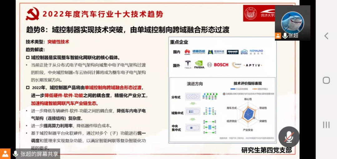 研究生第四党支部张超同学分享了“2022年度汽车行业十大技术趋势”的技术报告。