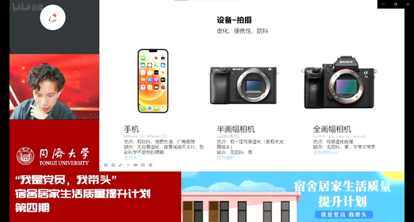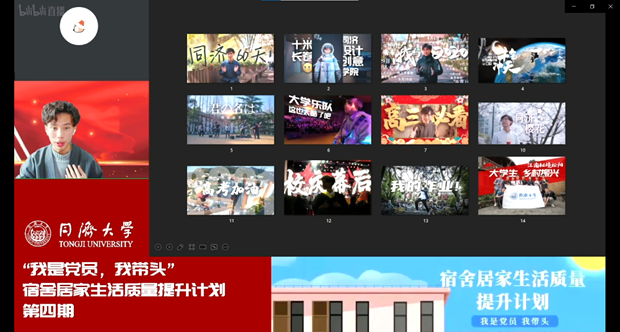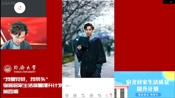 3月25日下午3点,“我是党员 我带头”宿舍居家生活质量提升计划最后一期直播顺利开展。本次直播我们邀请到了同济大学新媒体官方运营成员,曾受邀在优秀大学生事迹宣讲中展示的林慈丰同学为我们分享他对新媒体行业的感悟。