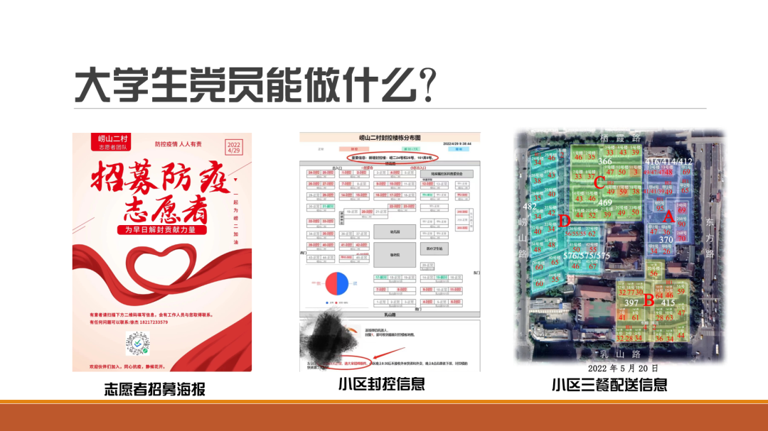 最后徐宏杰同学勉励大家,“毕业生党员应该起到带头作用,积极参加社区疫情防控志愿活动,为早日解封贡献力量!”