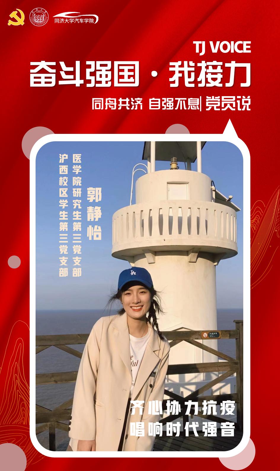 倪菲儿,同济大学材料科学与工程学院研究生第三党支部书记,2020级硕士,疫情期间担任嘉定校区友园15号楼层长。