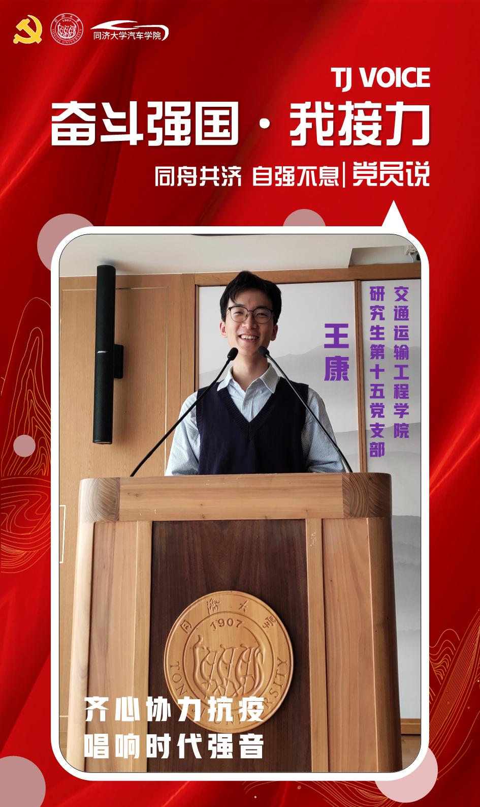 此次疫情,每位在校的同济人都不是旁观者,大家亲身经历了千钧一发的应急时刻,也共同见证了同济师生的守望相助和守土尽责。本次党员说讲述了同济人,特别是同济汽车人的责任和担当。
