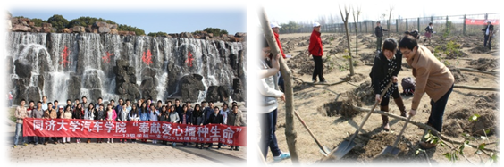 2014年3月,我支部组织全体党员和入党积极分子前往上海“东方绿舟”参加植树季活动,宣传环保意识和亲近自然的态度的同时,贯彻 “奉献爱心,播种生命”的活动理念,以植树的方式,向上海市儿童健康基金会先天性心脏病,先天性畸形专项基金捐赠钱款,以帮助贫困家庭先天性患病儿童接受手术治疗。研究生党员是社会的一份子,不光要热心学术,投入科研,勇于创新,同时也要承担自己应尽的社会责任,为我们社会的环保和公益事业献出自己的一份力量。本次活动同时得到了汽车学院办公网和同济大学新闻网的报道。