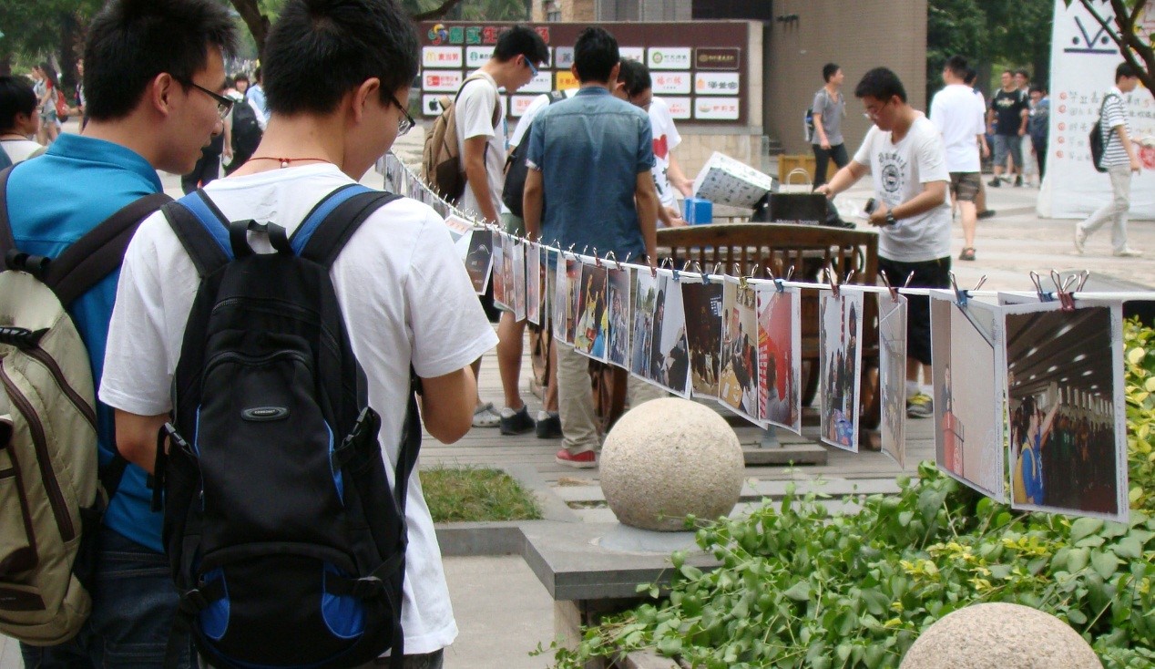 在正午闷热的天气下,为了能够赶在人流最多之前布置好所有明信片,11级本科支部的工作人员迅速展开了紧锣密鼓的准备工作中,不到10分钟,展出会场就布置完毕。很多准备去吃饭的同学路过时也会顺便观看一下明信片内朝气蓬勃的汽院学子,更有汽车学院的同学开始在明信片中找自己参与的活动,并用手机拍照留念。