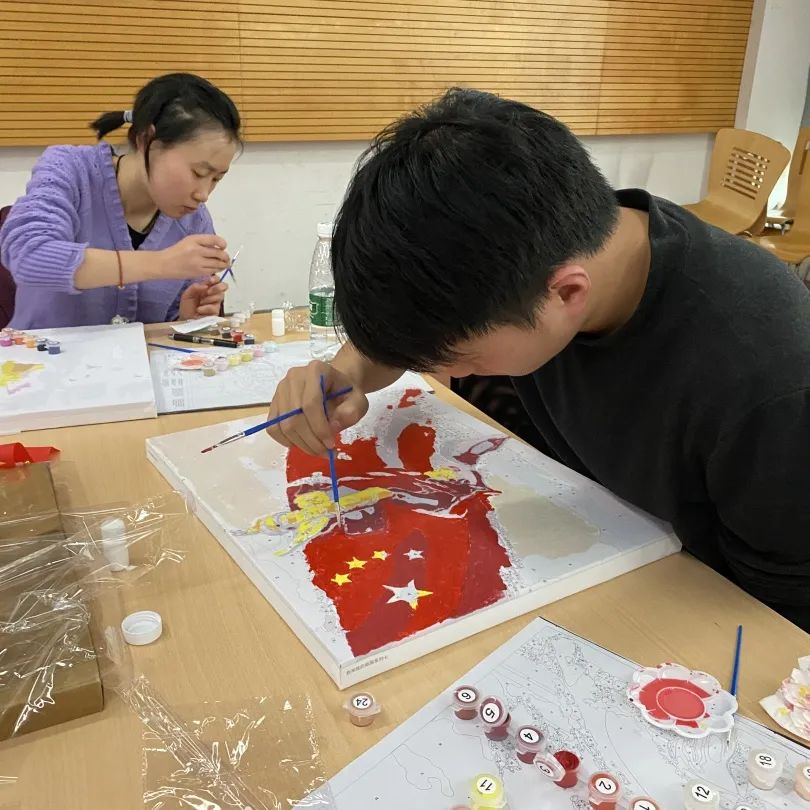 一百年来,中国共产党不忘初心、牢记使命、矢志不渝,在追求国家富强、民族振兴和人民幸福的伟大征程上,带领人民创造了一次又一次的丰功伟业,实现了中华民族从站起来到富起来,再到强起来的伟大飞跃。曾经衰败凋零的中华民族,现在是一派欣欣向荣,并以不可阻挡的步伐迈向伟大复兴。为了进一步坚定政治信仰、致敬革命先贤、传承红色基因、汲取前进力量,并表达对党的感恩之情和对祖国的美好祝愿,与会同学相互合作,制作了一件件精美的手工作品。在感悟红色精神的过程中,大家交流分享、相互了解、增进共识、共同进步。
