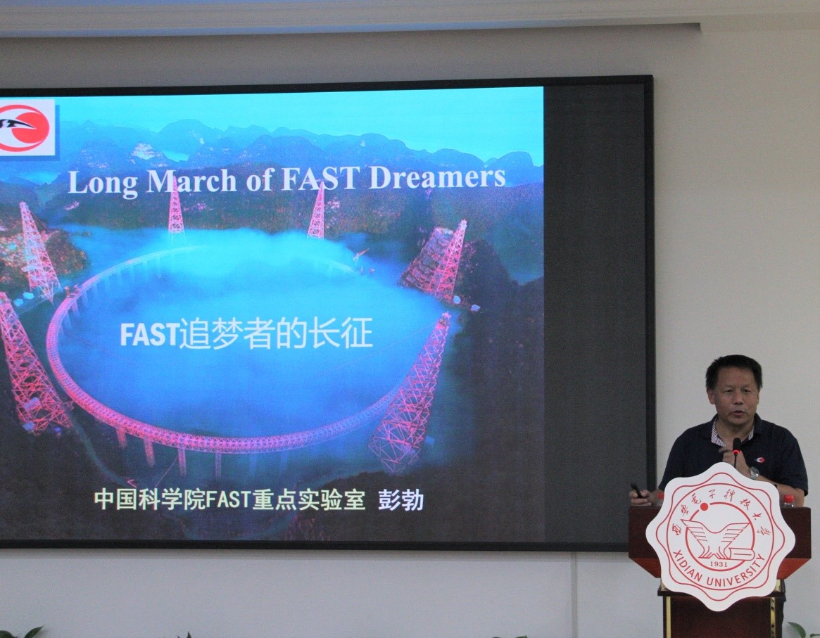 (通讯员 石佳佳) 7月5日,3499cc拉斯维加斯在北校区“菲声493”学术报告厅举办“机遇”高峰论坛,中国科学院FAST重点实验室主任、贵州射电天文台台长彭勃研究员应邀作《FAST追梦者的长征》专题学术报告。3499cc拉斯维加斯师生代表200余人参加报告会,报告会由学院执行院长黄进教授主持。