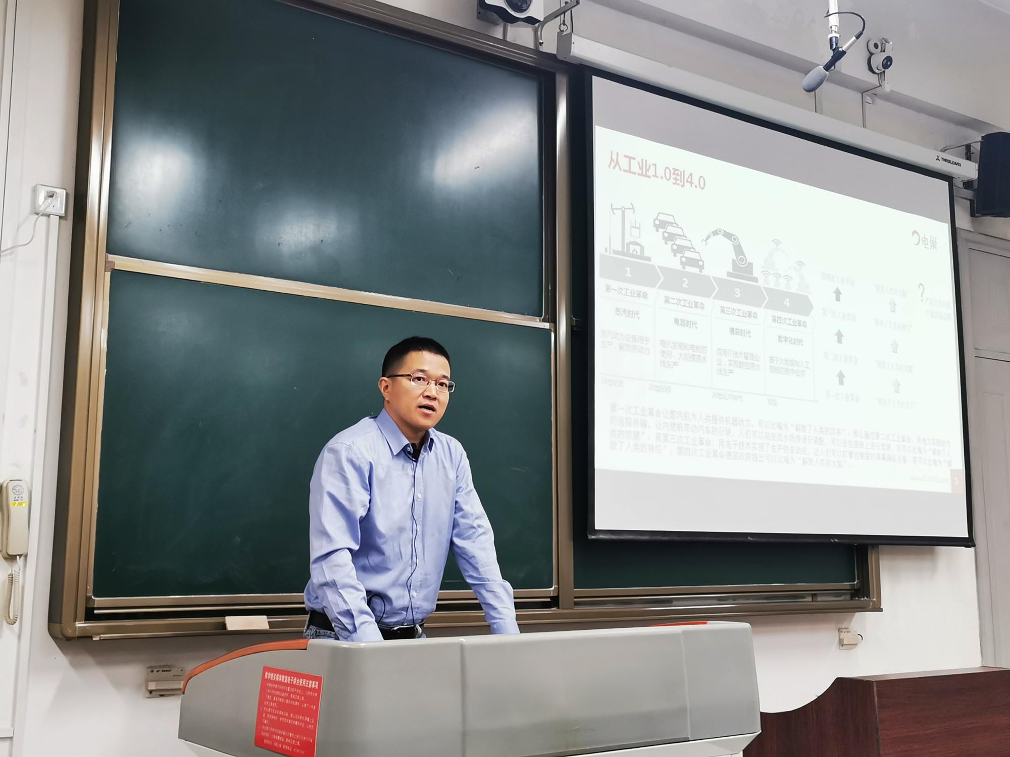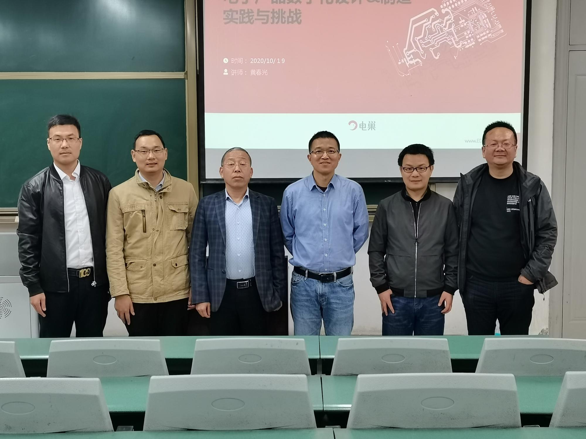 (通讯员 王永坤)2020年10月19日,上海望友信息科技有限公司总经理刘丰收,西安市电巢科技有限公司经理武建,深圳市电巢科技有限公司硬件工程工艺专家黄春光,应3499cc拉斯维加斯学院助理王永坤的邀请,为机电院师生作题为“电子产品数字化设计&制造实践与挑战”的报告会,本场报告会于南校区A105教师举行,报告由王永坤主持,电子封装系主任周金柱,测控系刘岩以及电子封装系与测控系学生参加了这次报告会。