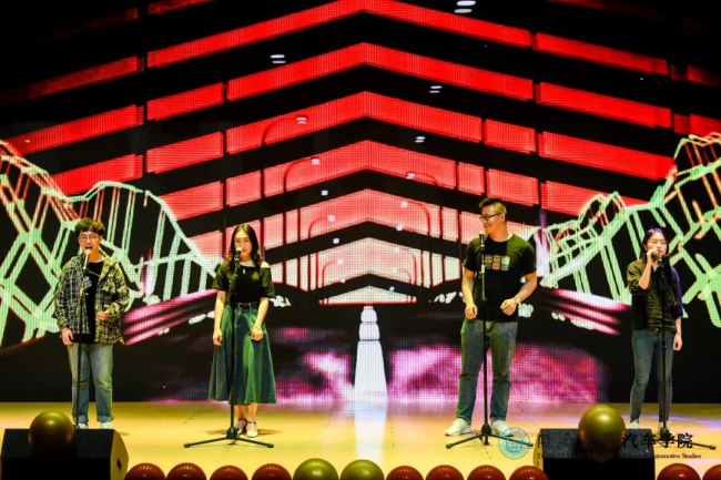 汽车学院党委书记曹静为晚会致开幕辞,回望过去,同济汽车全体师生携手共进收获诸多成就,展望未来,“三十而立”的同济汽车继续蓬勃发展。
