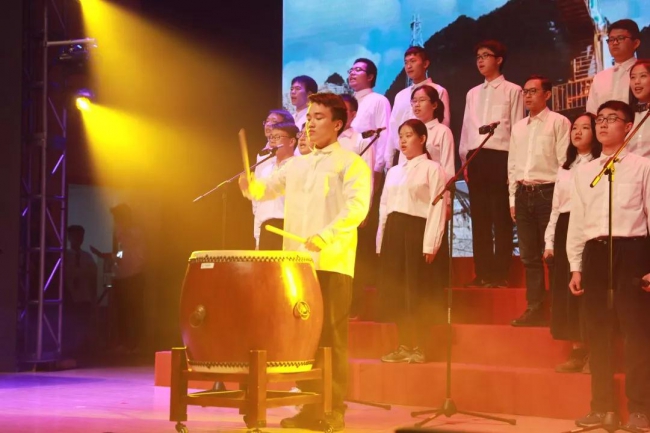 同济大学新生院济美学堂的同学将合唱、乐器、舞蹈融在一体,一曲《筑梦中国》致敬峥嵘岁月,放歌伟大新时代。