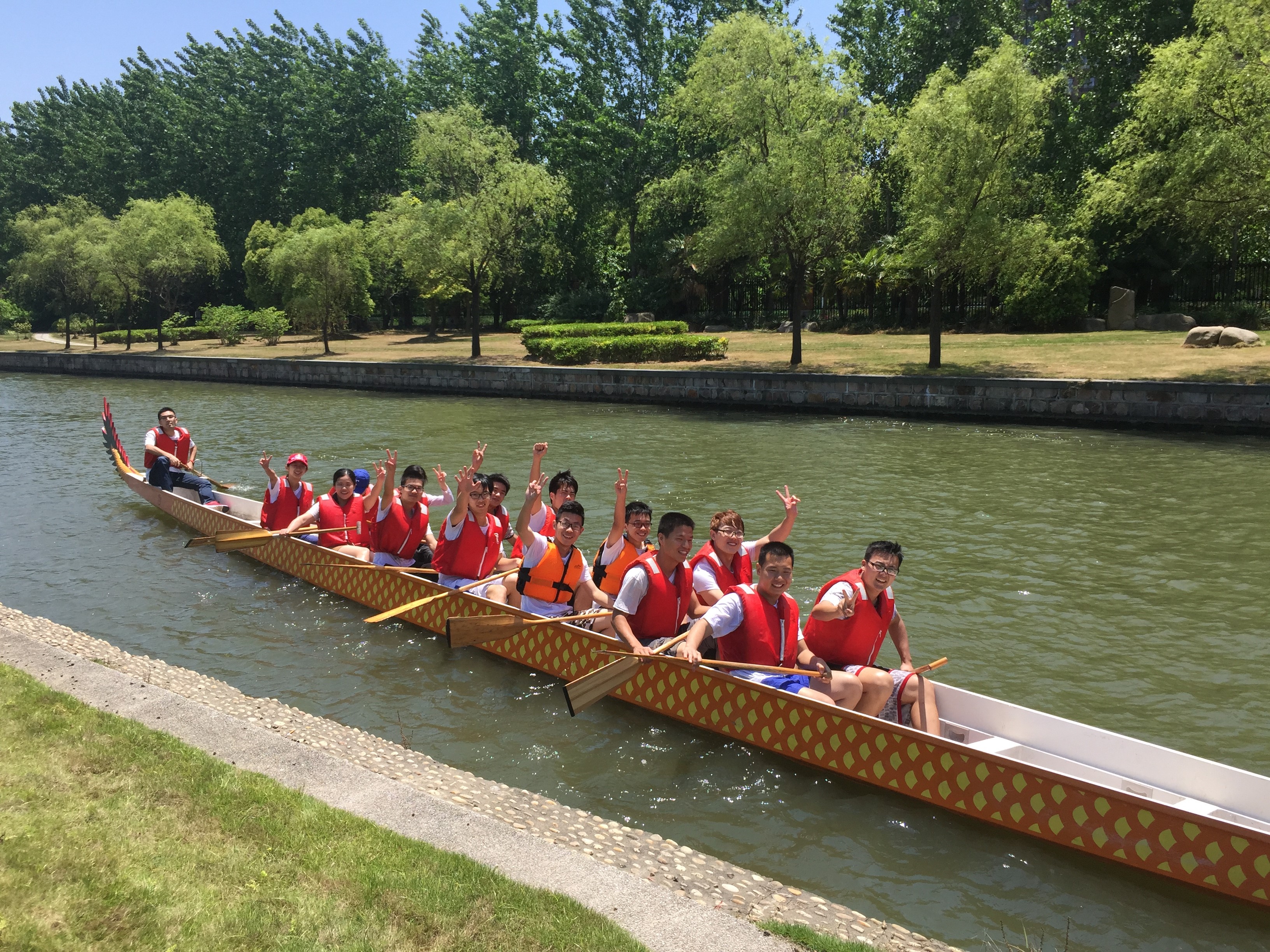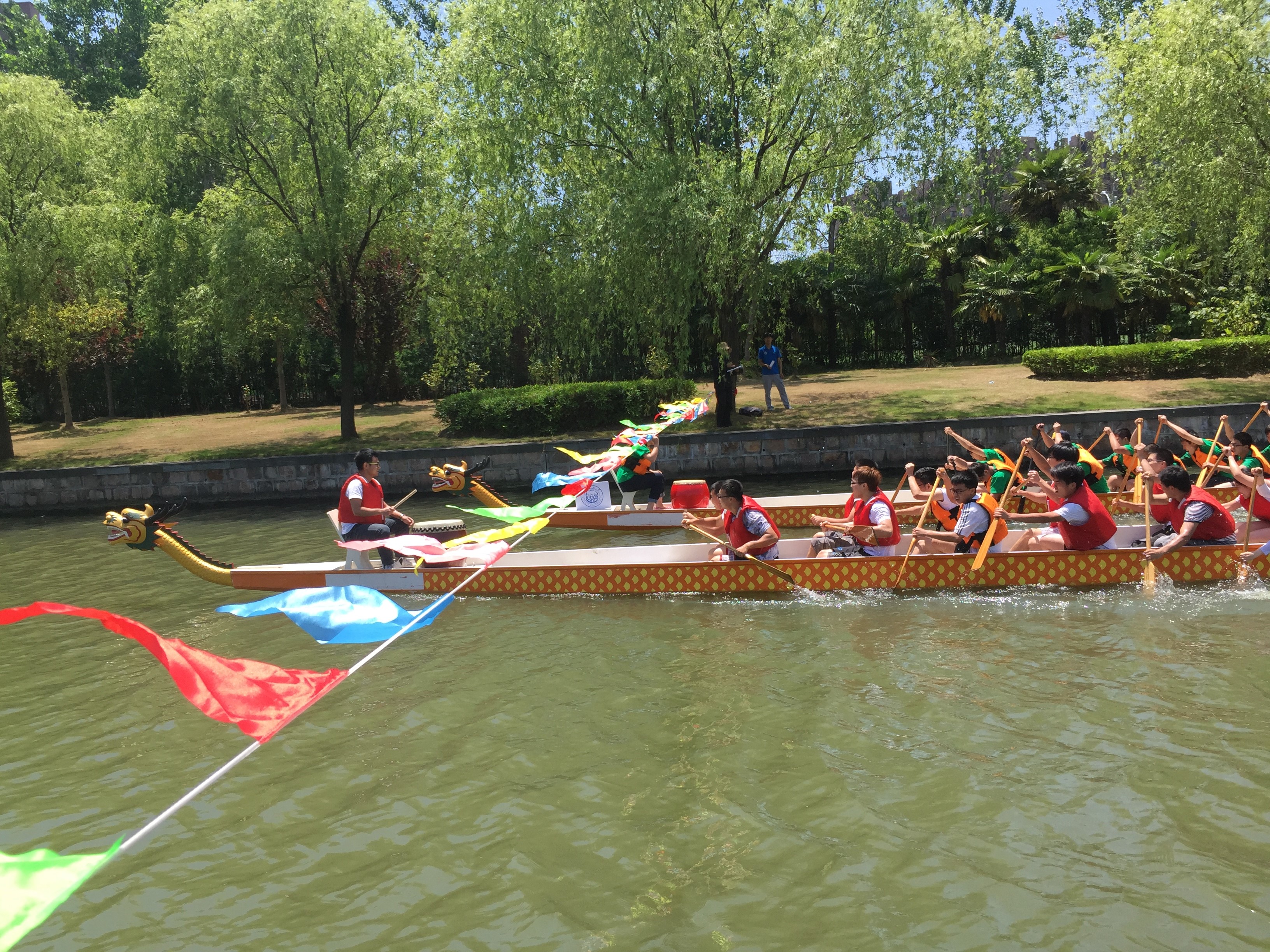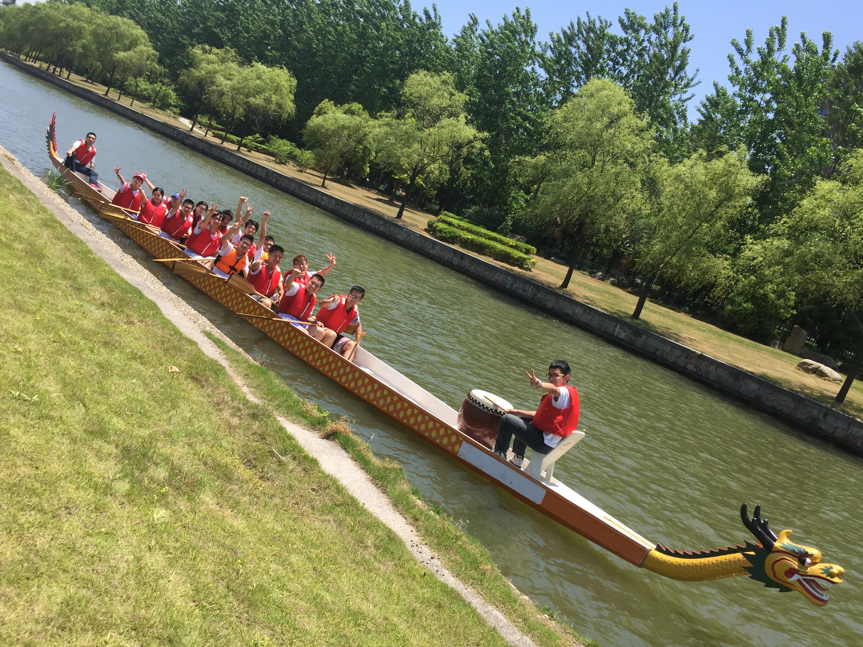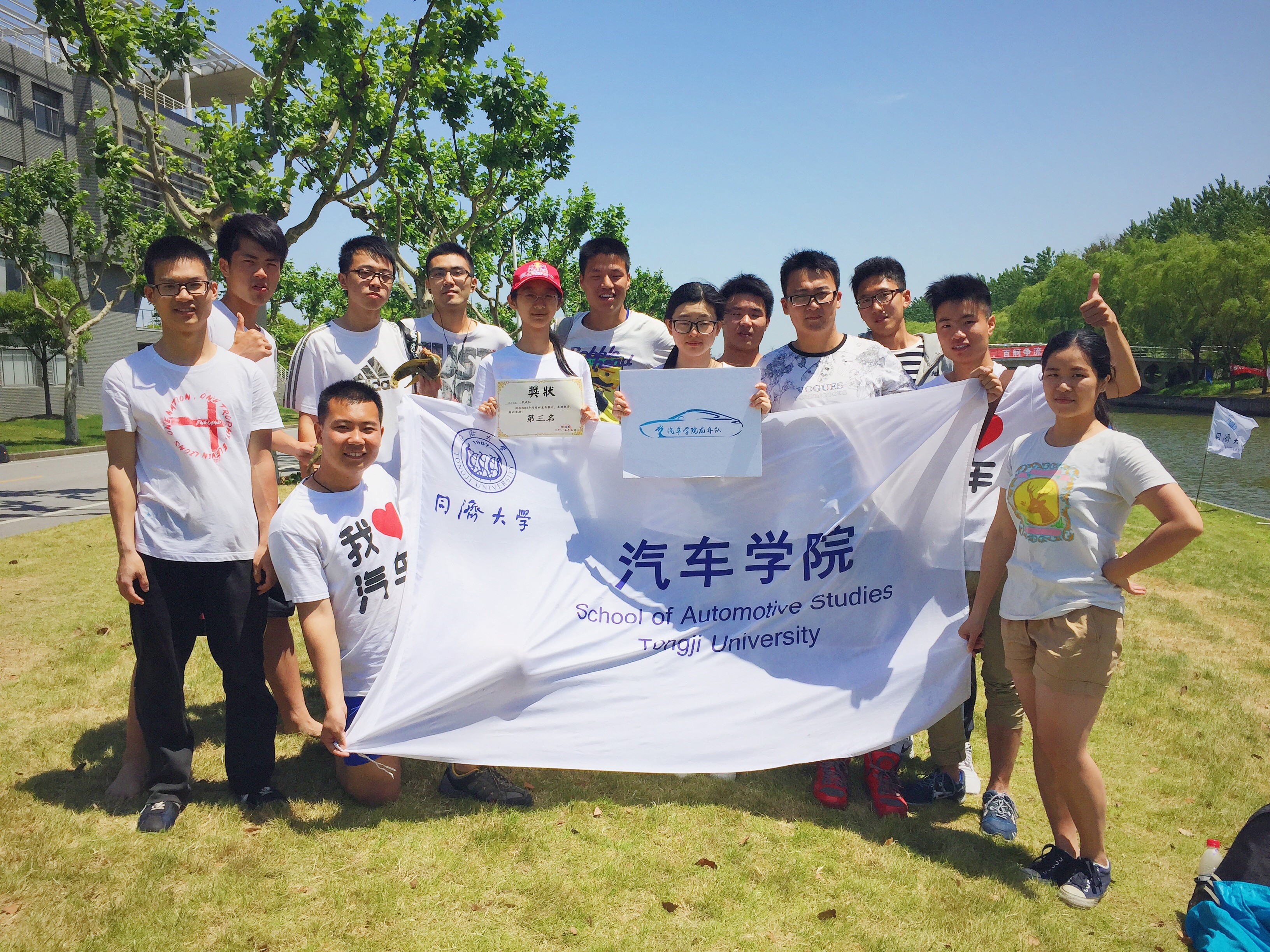 2015年5月12日上午,同济大学龙舟赛在嘉定校区同舟河举行。来自嘉定校区各学院、四平路校区土木学院、教工代表队、留学生队、后勤代表队、嘉定区外冈镇代表队等16支代表队参赛。在三个多小时的比赛过程中,汽车学院龙舟队的队员们鼓足干劲,奋勇争先,最终斩获了校运会龙舟赛季军,名列院系之首。