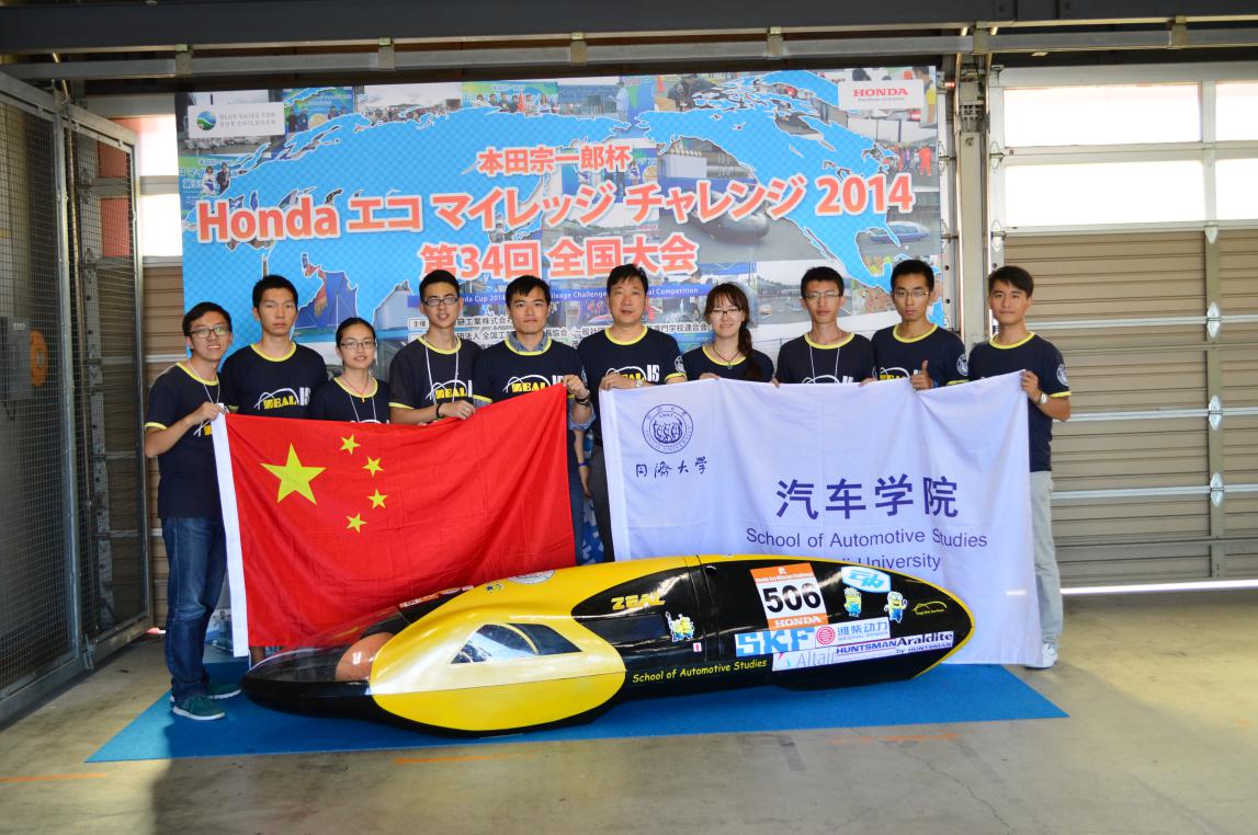 同济大学汽车学院志远车队于2014年9月28日,第十四次受邀赴日参加本田宗一郎杯节能竞技大赛,在预赛中跑出车队海外赛事新纪录1457.295km/L,并在决赛中以1327.035km/L(每升汽油行进1327.035公里)的成绩获得了新挑战组第四名的佳绩。