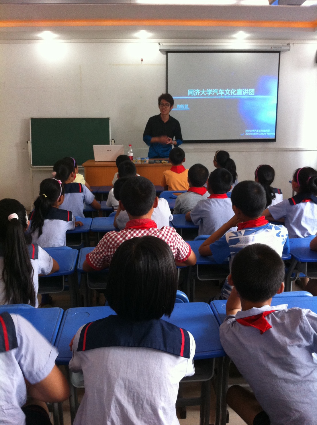2014年5月29日,同济大学汽车文化宣讲团和阳光中心嘉定工作站社工印洁一起走进马陆镇包桥小学。团长陶智健做了关于“未来汽车”做了主题宣讲,包桥小学五年级的同学们展开了热烈的讨论,主讲人深入浅出地介绍了未来汽车以及目前汽车上搭载的尖端技术,同学们热情高涨,想象力非常丰富,与宣讲人积极互动。