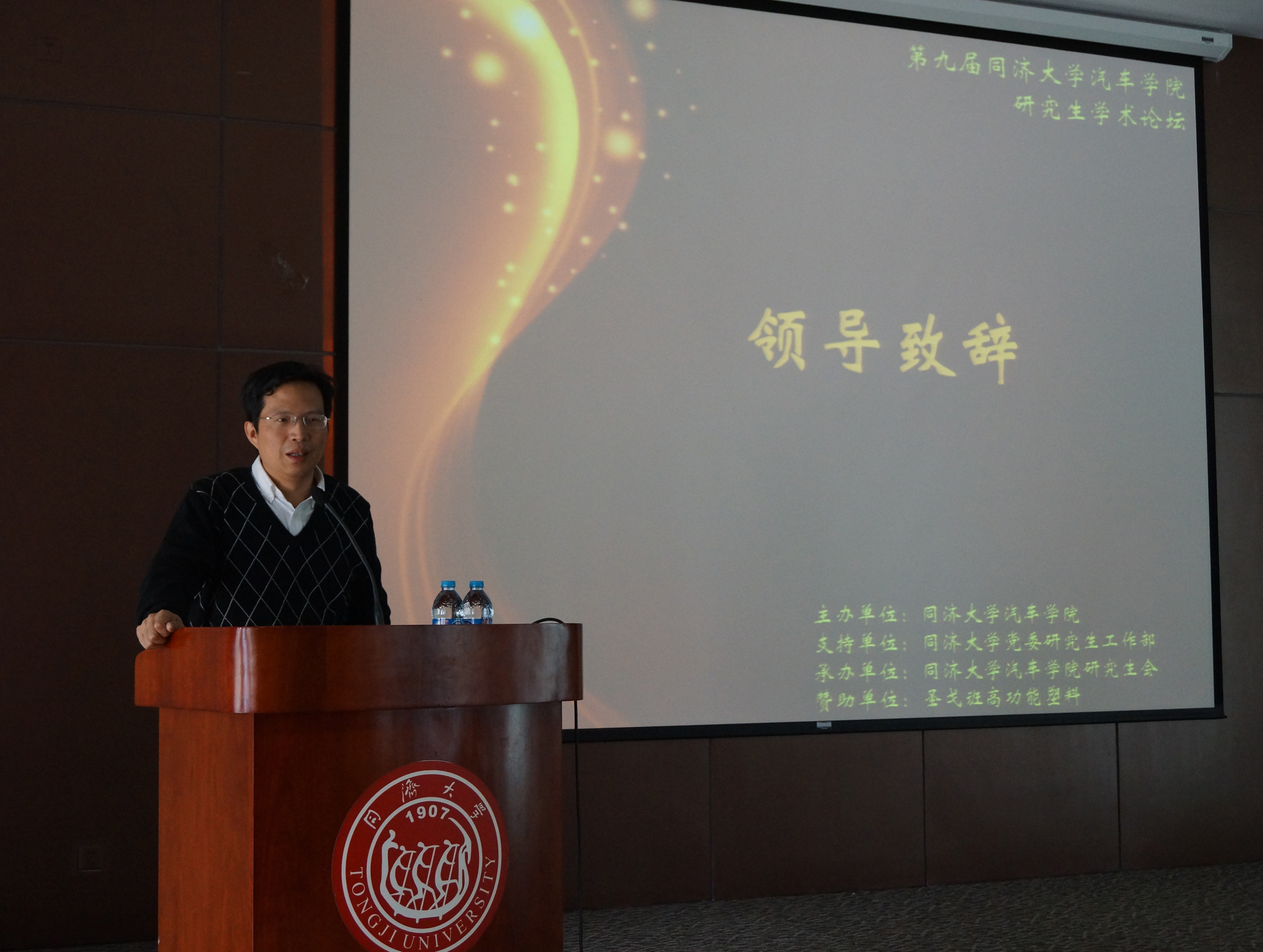 11月19日,同济大学汽车学院第九届研究生学术论坛颁奖典礼暨名师讲坛成功举办。汽车学院副院长魏学哲老师,圣戈班中国研发中心研发经理刘晓烨先生,汽车学院党委副书记曹静老师,汽车学院党委副书记钟再敏老师,以及汽车学院的师生们参加了此次学术论坛的颁奖典礼和名师讲坛。