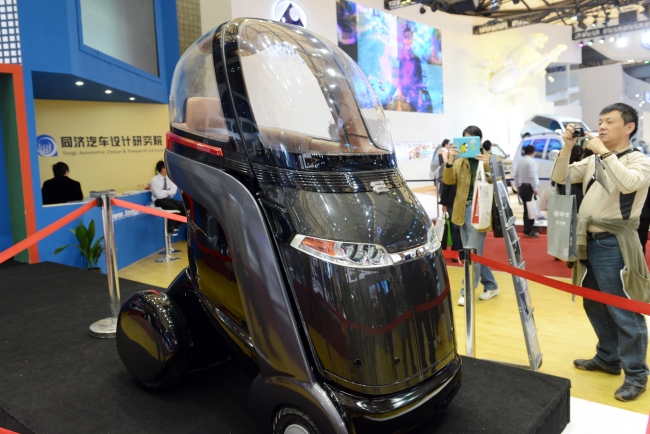 另一款“微型智能电动概念车” 由同济汽车设计研究院、上海航天汽车机电股份公司联合研发,适于短距离低速行驶,其时速介于5公里至25公里间,一次充电连续行驶里程大于60公里。它的造型设计完全摆脱车辆“箱体式”造型,让车子如同一个活的生命体:可折叠亦可展开,其娇小的身形可在非机动车道行驶,还可进出电梯或家门,即使在拥挤场合也能灵活行驶,且操作简单,适用于年轻人、家庭主妇、离退休老人等各类不同年龄段人群。既可满足当今城市家庭用车新需求,又可成为未来人口密集、交通拥堵的大中型城市中人类重要的移动解决方案之一。目前,在国内市场上尚无其同类产品。