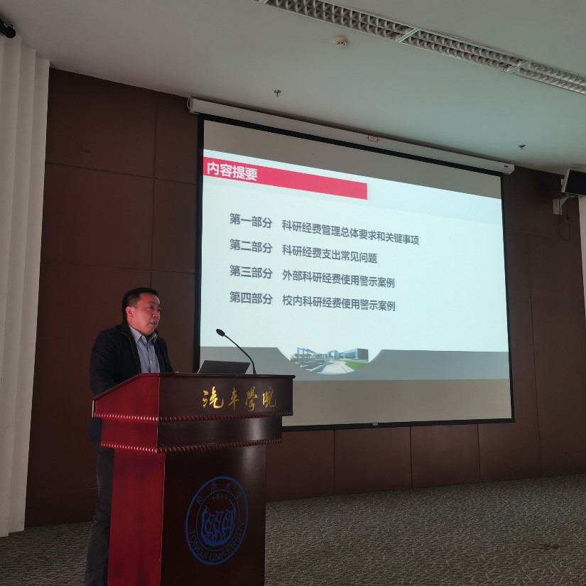 为进一步加强学院教师科研经费的合理使用和管理,规范学院内部风险管控机制,充分发挥警示、震慑、教育作用,学院邀请了同济大学财务处副处长瞿惠良老师做《科研经费使用中常见问题和警示案例》的主题报告,并在工程中心一楼大厅布置了科研经费使用警示案例展。报告通过典型案例,让老师们对照反思,主动寻找问题,积极自查和整改,防微杜渐,提醒和告诫老师们在做好科研工作的同时,要全面理解国家“放、管、服”政策,自觉恪守科研诚信,规范经费使用和管理。