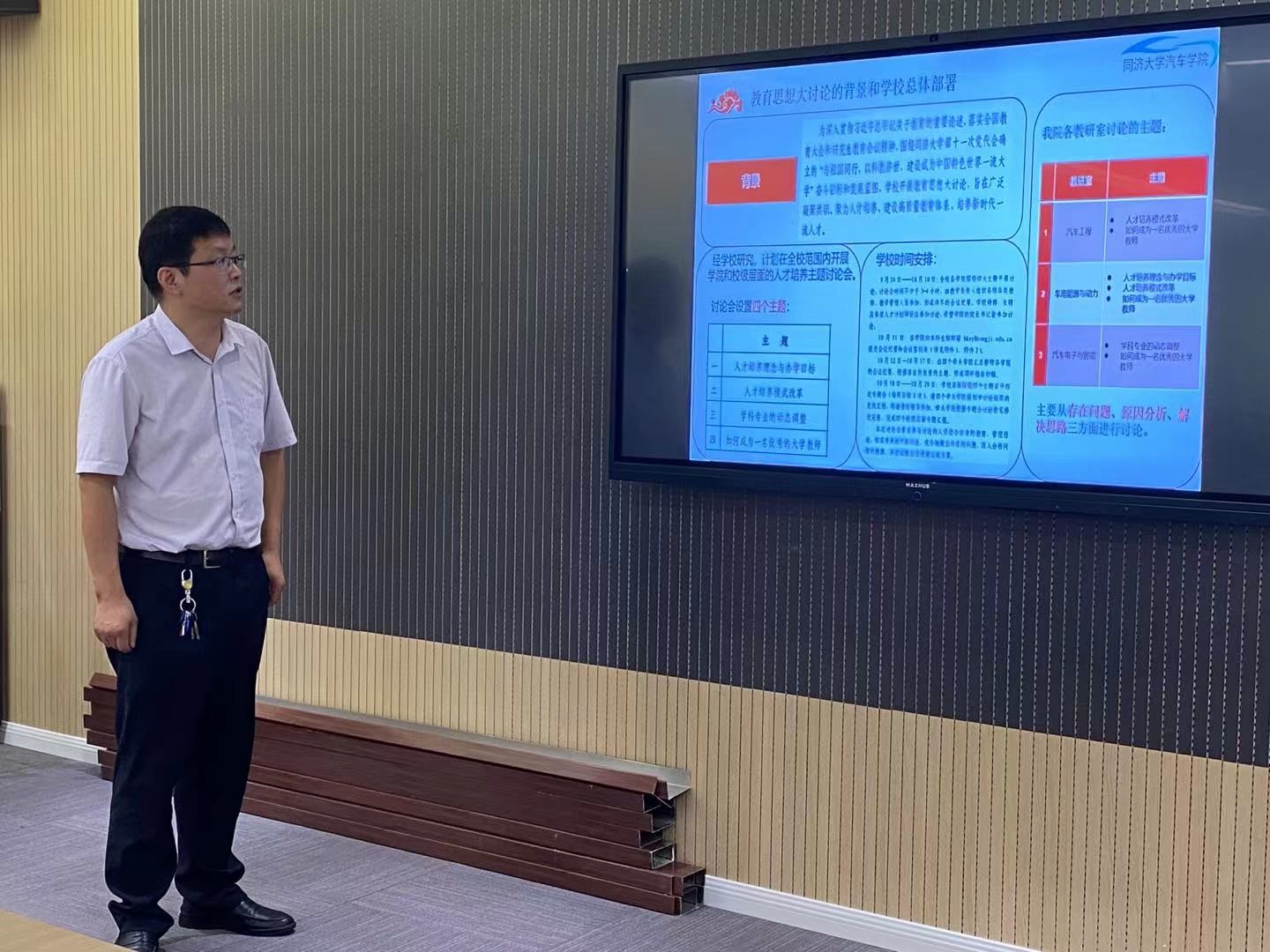 首先,赵治国副院长介绍了学校教育思想大讨论的背景和精神,会议围绕同济大学第十一次党代会确立的“与祖国同行,以科教济世,建设成为中国特色世界一流大学”奋斗目标和发展蓝图,以及汽车学院“十四五规划”目标,开展人才培养主题讨论会,旨在广泛凝聚全院教师共识、聚力学院人才培养,建设学院高质量教育体系,培养新时代一流汽车工程专业人才。