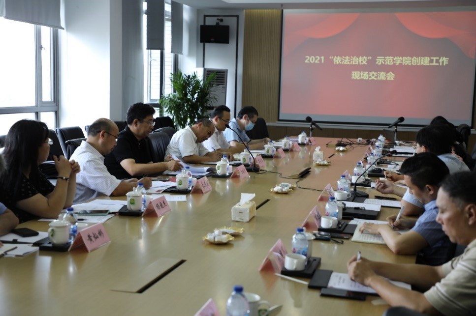 汽车学院副院长吴旭东从指导思想与工作组织、创建工作的推进情况、存在问题与改进措施三个方面就汽车学院申报“依法治校”示范学院的推进情况进行了汇报。