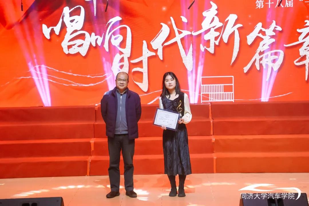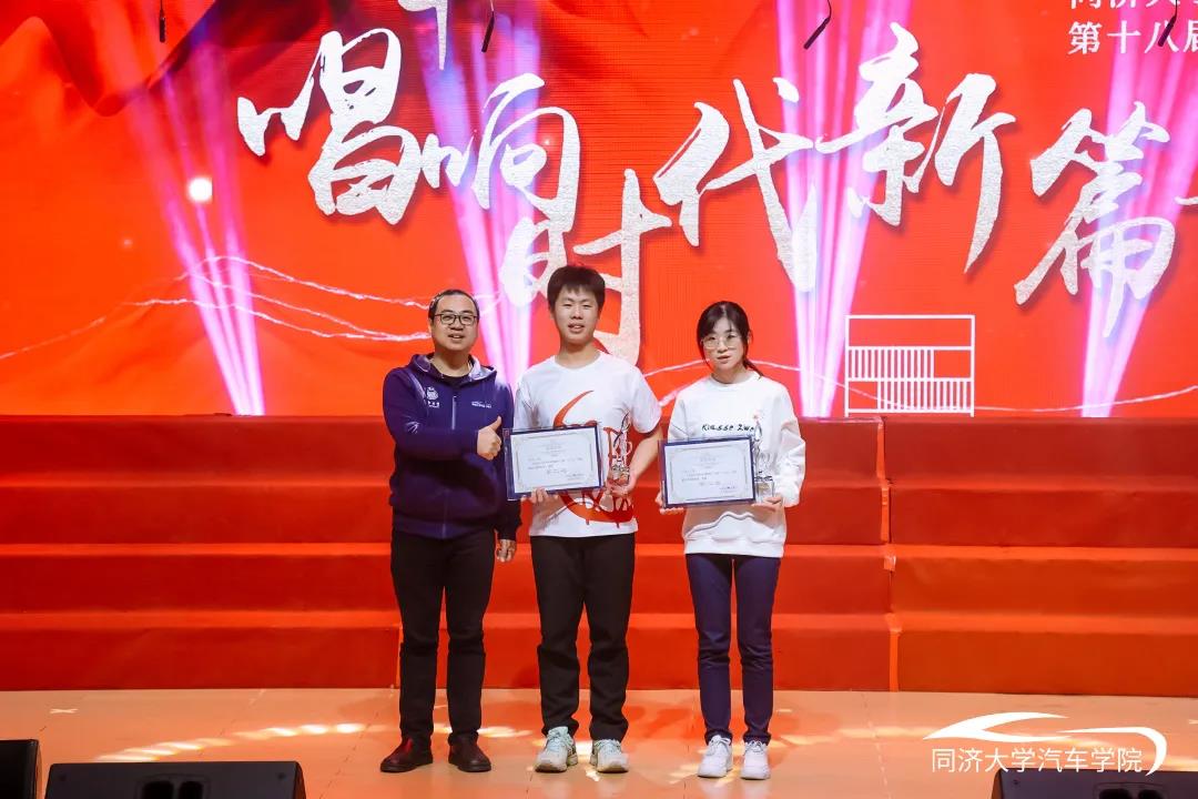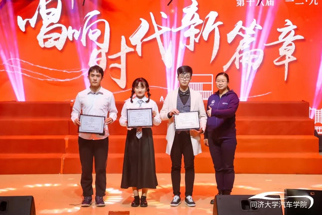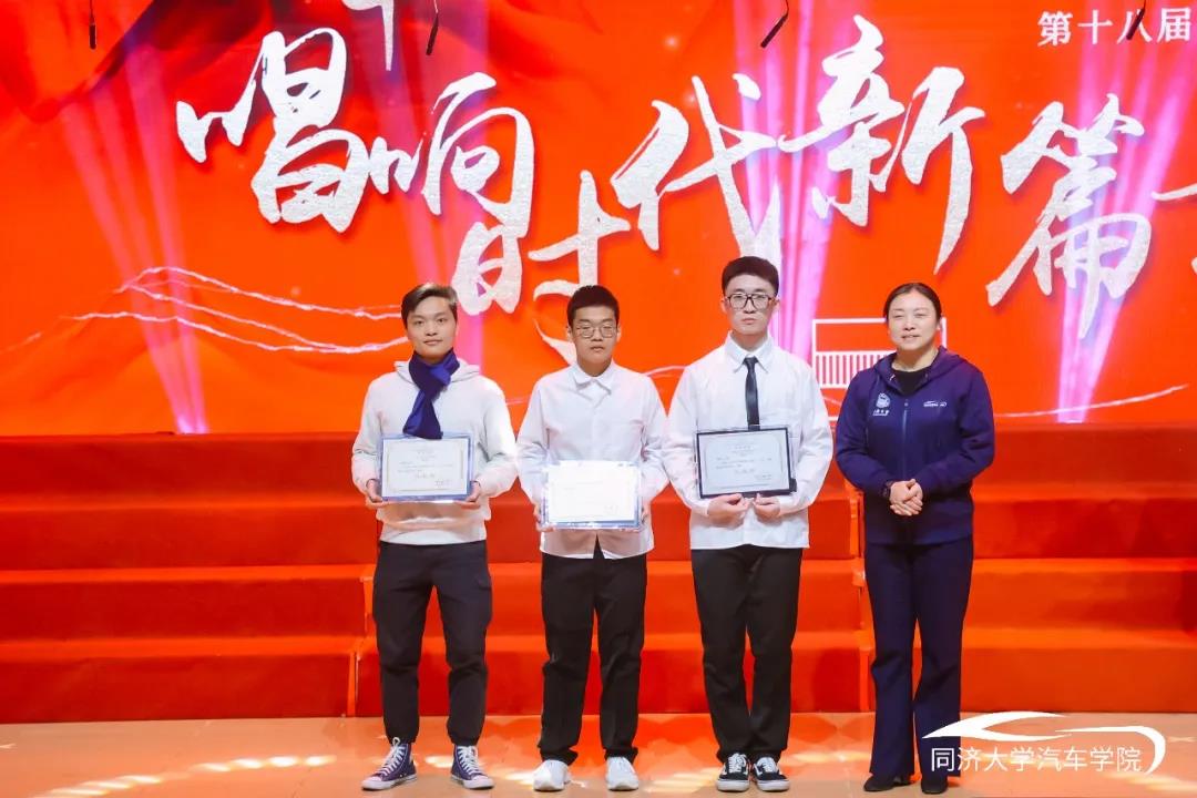 最后,汽车学院教工合唱团的老师们为大家带来了《没有共产党就没有新中国》,随后歌会在汽车学院教师合唱团与观众合唱的《同济之歌》的歌声中圆满落下帷幕。最终本科2018级获得一等奖,本科2019级1班、本科2019级2班获得二等奖,研究生2021级能源动力班、2021级博士班、研究生2021级汽车电子班获得三等奖。本科2019级3班、本科2019级4班、研究生2021级汽车工程班获得优胜奖。研究生2021级中德班获最佳舞台奖,本科2019级5班获得最佳视频奖,本科2020级获最佳风采奖。