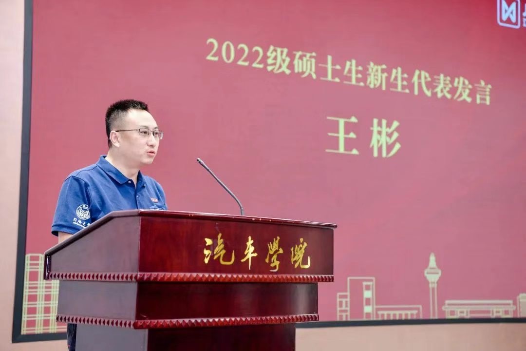 2022级王彬作为硕士生新生代表发言。他表示同济大学一直是自己梦寐以求的高等学府,有幸来到同济汽车学习,必定珍惜来之不易的学习机会,利用自身优势,开拓创新,在将来取得令人欣喜的成绩。