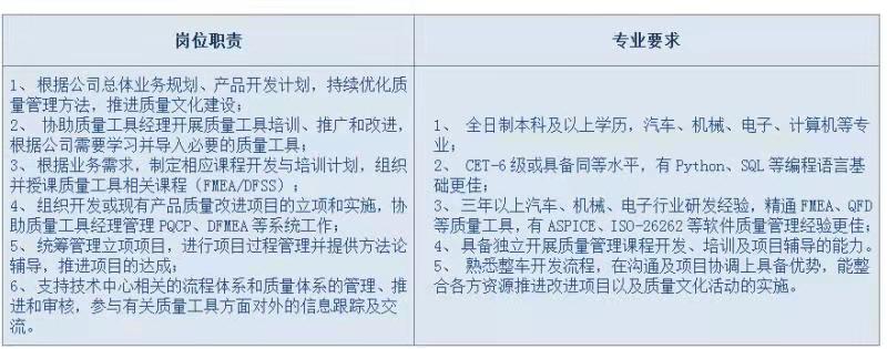 上汽乘用车-质量工具岗招聘,校招社招均可,发送简历至zhongyimei@saicmotor.com