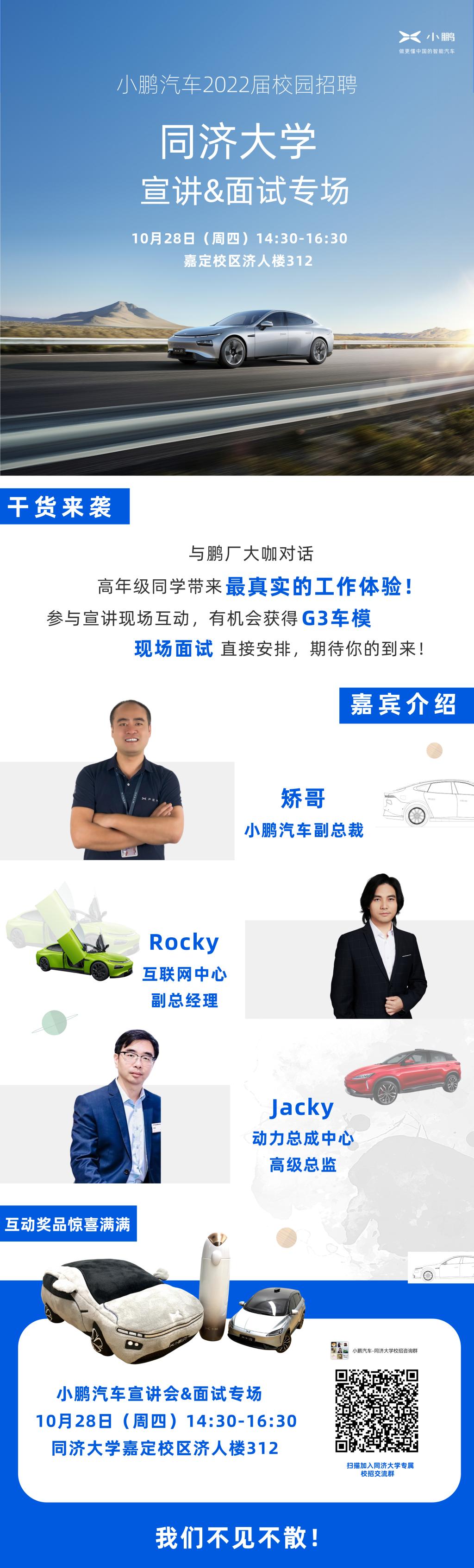 小鹏汽车2022届校园招聘[同济大学]宣讲会即将开启!