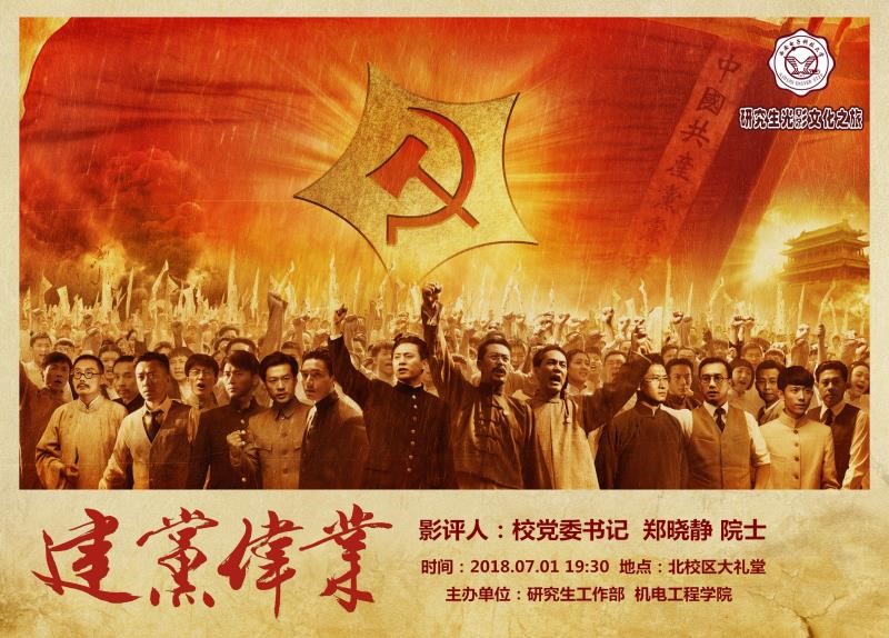 为庆祝中国共产党成立97周年,重温革命先烈为国家民族振兴而救国救民的光荣历史,增强教职工与学生党员责任感与使命感,7月1日晚,由研究生工作部主办,3499cc拉斯维加斯承办的“研究生光影文化之旅”系列电影放映活动之一电影《建党伟业》在北校区文化活动中心放映。学院领导班子成员、部分教师党员和学生党员集体观看影片,校党委书记郑晓静院士出席并发表讲话。