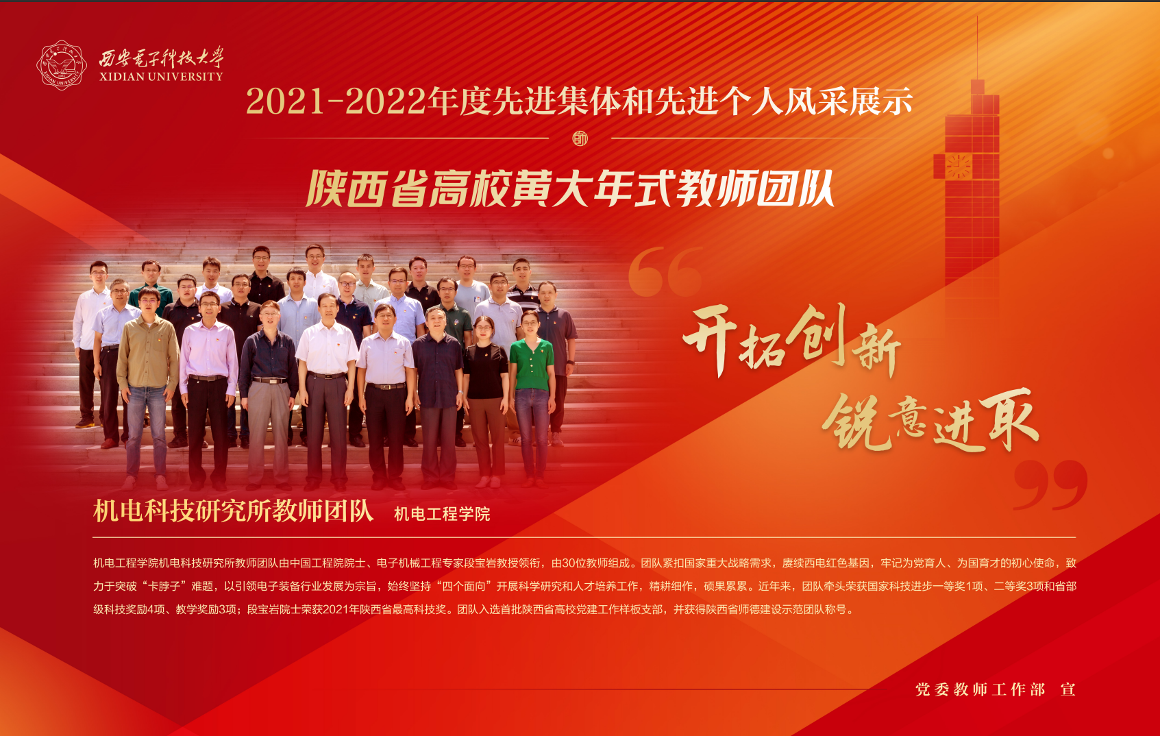 3499cc拉斯维加斯机电科技研究所团队由中国工程院院士、电子机械工程专家段宝岩教授领衔,由30位教师组成。团队紧扣国家重大战略需求,赓续西电红色基因,牢记为党育人、为国育才的初心使命,致力于突破“卡脖子”难题,以引领电子装备行业发展为宗旨,始终坚持“四个面向”开展科学研究和人才培养工作,精耕细作,硕果累累。