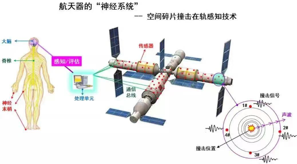 为应对空间碎片威胁,航天学院庞宝君教授团队与北京空间飞行器总体设计部,联合开发了专门针对梦天实验舱结构特点的空间碎片撞击感知技术,并将其应用于梦天实验舱结构健康监测子系统的空间碎片撞击监测模块。 该技术能够对空间碎片撞击事件进行实时感知、判别并定位,为航天员和地面控制人员及时采取应对措施提供依据,保护空间站和航天员安全。