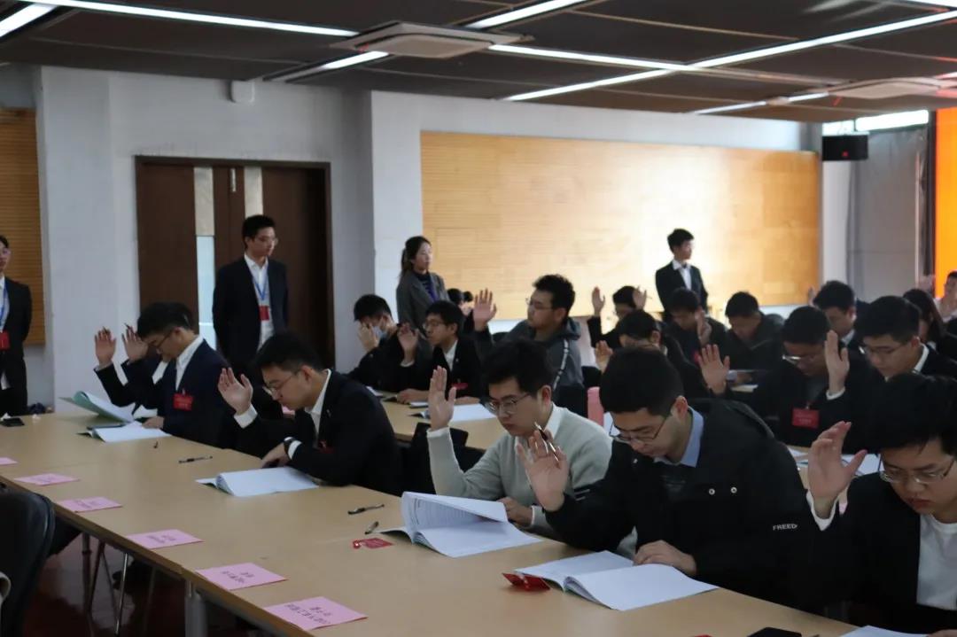 同济大学汽车学院第十七届研究生会主席团候选人于章骏、邢萍和唐倩雯进行竞选演讲,大会以无记名投票方式差额选举选出于章骏和邢萍当选为同济大学汽车学院第十七届研究生会主席团成员。